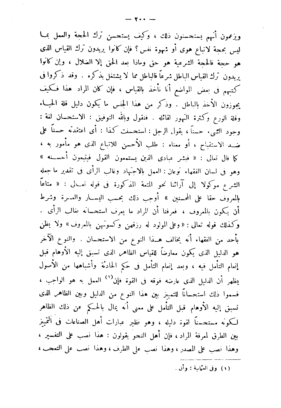 وَالنَّوْع الآخر هُوَ الدَّلِيل الَّذِي يكون مُعَارضا للْقِيَاس الظَّاهِر الَّذِي تسبق إِلَيْهِ الأوهام قبل إنعام التَّأَمُّل فِيهِ وَبعد إنعام التَّأَمُّل فِي حكم الْحَادِثَة وأشباهها من الْأُصُول يظْهر أَن الدَّلِيل الَّذِي عَارضه فَوْقه فِي الْقُوَّة فَإِن الْعَمَل بِهِ هُوَ الْوَاجِب فسموا ذَلِك اسْتِحْسَانًا للتمييز بَين هَذَا النَّوْع من الدَّلِيل وَبَين الظَّاهِر الَّذِي تسبق إِلَيْهِ الأوهام قبل التَّأَمُّل على معنى أَنه يمال بالحكم عَن ذَلِك الظَّاهِر لكَونه مستحسنا لقُوَّة دَلِيله وَهُوَ نَظِير عِبَارَات أهل الصناعات فِي التَّمْيِيز بَين الطّرق لمعْرِفَة المُرَاد فَإِن أهل النَّحْو يَقُولُونَ هَذَا نصب على التَّفْسِير وَهَذَا نصب على الْمصدر وَهَذَا نصب على الظّرْف وَهَذَا نصب على التَّعَجُّب