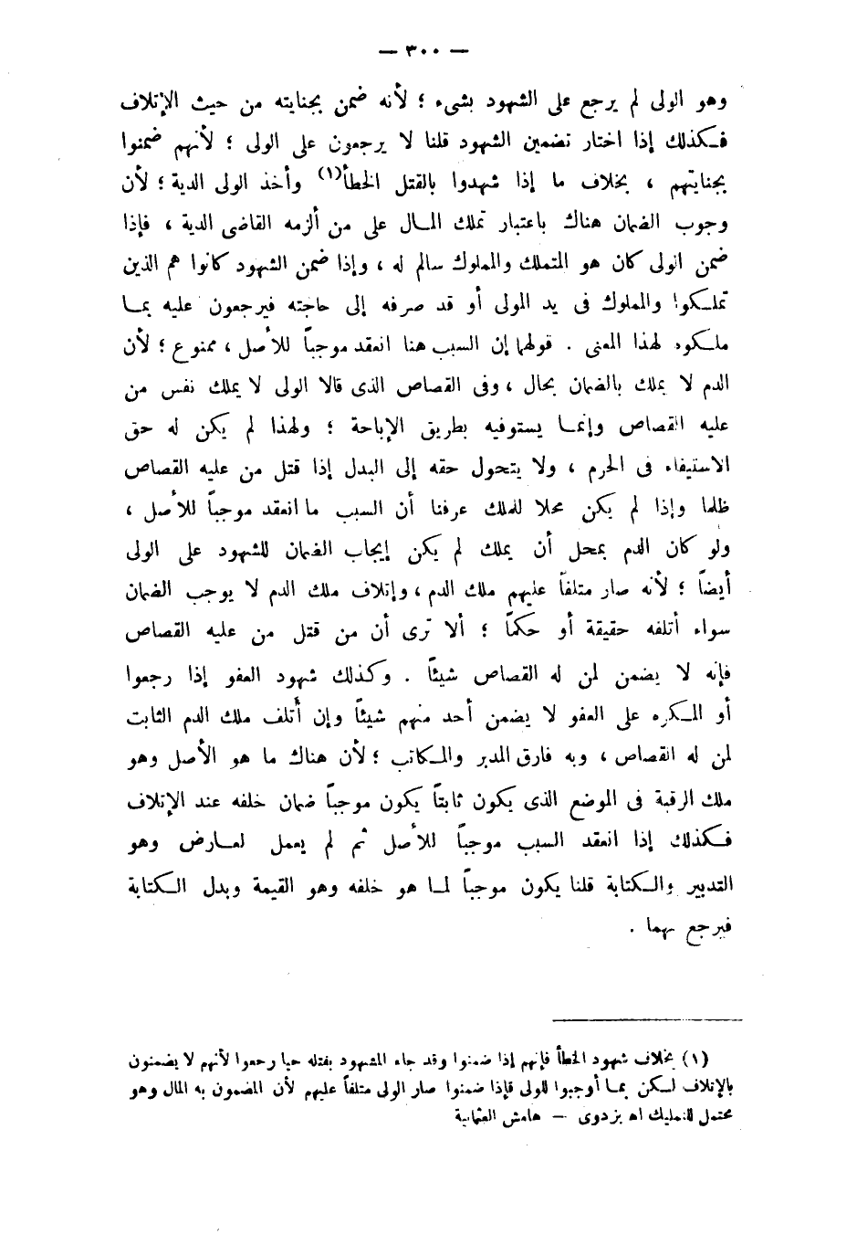 قَوْلهمَا إِن السَّبَب هُنَا انْعَقَد مُوجبا للْأَصْل مَمْنُوع لِأَن الدَّم لَا يملك بِالضَّمَانِ بِحَال وَفِي الْقصاص الَّذِي قَالَا الْوَلِيّ لَا يملك نفس من عَلَيْهِ الْقصاص وَإِنَّمَا يَسْتَوْفِيه بطرِيق الْإِبَاحَة وَلِهَذَا لم يكن لَهُ حق الِاسْتِيفَاء فِي الْحرم وَلَا يتَحَوَّل حَقه إِلَى الْبَدَل إِذا قتل من عَلَيْهِ الْقصاص ظلما وَإِذا لم يكن محلا للْملك عرفنَا أَن السَّبَب مَا انْعَقَد مُوجبا للْأَصْل وَلَو كَانَ الدَّم بِمحل أَن يملك لم يكن إِيجَاب الضَّمَان للشُّهُود على الْوَلِيّ أَيْضا لِأَنَّهُ صَار متلفا عَلَيْهِم ملك الدَّم وَإِتْلَاف ملك الدَّم لَا يُوجب الضَّمَان سَوَاء أتْلفه حَقِيقَة أَو حكما أَلا ترى أَن من قتل من عَلَيْهِ الْقصاص فَإِنَّهُ لَا يضمن لمن لَهُ الْقصاص شَيْئا
