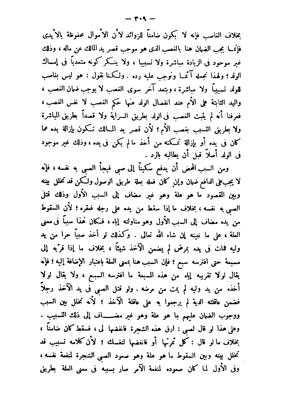 وعَلى هَذَا لَو قَالَ لصبي ارق هَذِه الشَّجَرَة فانفضها لي فَسقط كَانَ ضَامِنا بِخِلَاف مَا لَو قَالَ كل ثَمَرَتهَا أَو فانفضها لنَفسك لِأَن كَلَامه تسبيب قد تخَلّل بَينه وَبَين السُّقُوط مَا هُوَ عِلّة وَهُوَ صعُود الصَّبِي الشَّجَرَة لمَنْفَعَة نَفسه وَفِي الأول لما كَانَ صُعُوده لمَنْفَعَة الْآمِر صَار بِسَبَبِهِ فِي معنى الْعلَّة بطرِيق