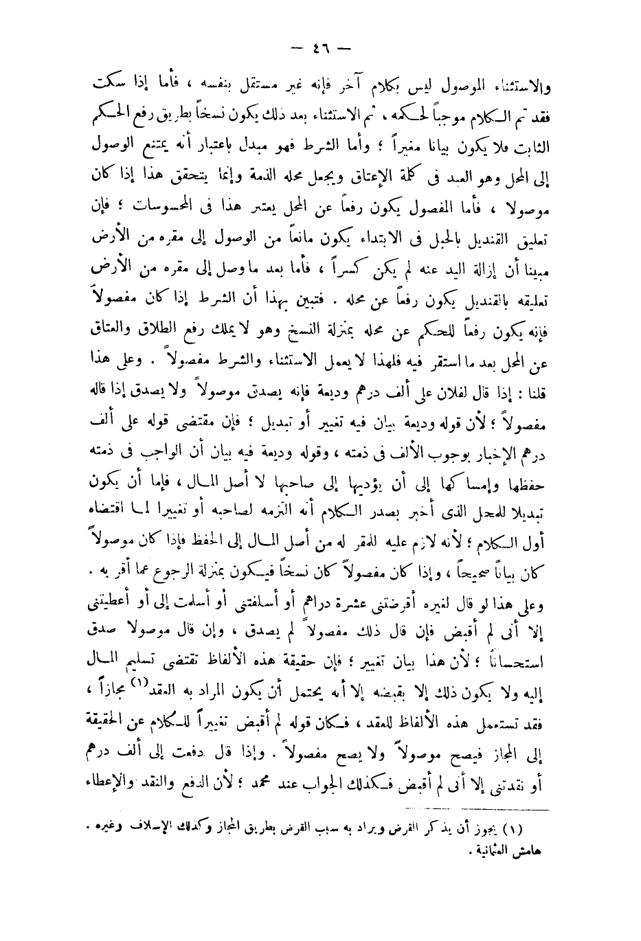 فَتبين بِهَذَا أَن الشَّرْط إِذا كَانَ مَفْصُولًا فَإِنَّهُ يكون رفعا للْحكم عَن مَحَله بِمَنْزِلَة النّسخ وَهُوَ لَا يملك رفع الطَّلَاق وَالْعتاق عَن الْمحل بَعْدَمَا اسْتَقر فِيهِ فَلهَذَا لَا يعْمل الِاسْتِثْنَاء وَالشّرط مَفْصُولًا