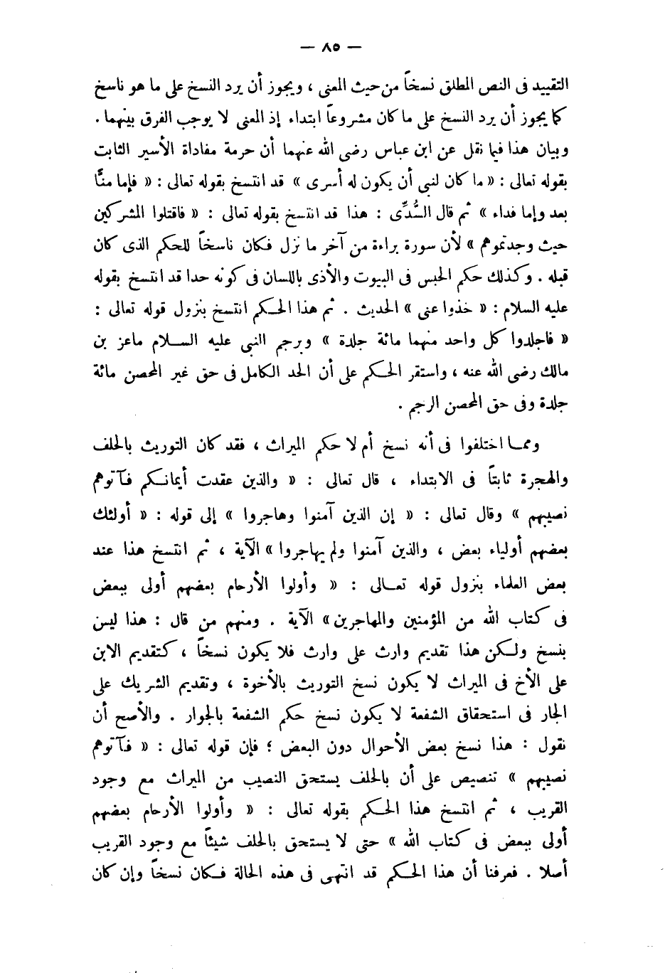 وَمِنْهُم من قَالَ هَذَا لَيْسَ بنسخ وَلَكِن هَذَا تَقْدِيم وَارِث على وَارِث فَلَا يكون نسخا كتقديم الابْن على الْأَخ فِي الْمِيرَاث لَا يكون نسخ التوريث بالأخوة وَتَقْدِيم الشَّرِيك على الْجَار فِي اسْتِحْقَاق الشُّفْعَة لَا يكون نسخ حكم الشُّفْعَة بالجوار