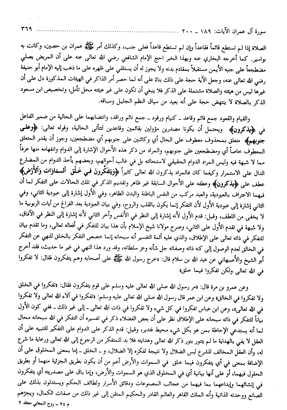 فقد أخرج أبو الشيخ والأصبهاني عن عبد الله بن سلام قال: «خرج رسول الله صلّى الله عليه وسلم على أصحابه وهم يتفكرون فقال: لا تفكروا في الله تعالى ولكن تفكروا فيما خلق»