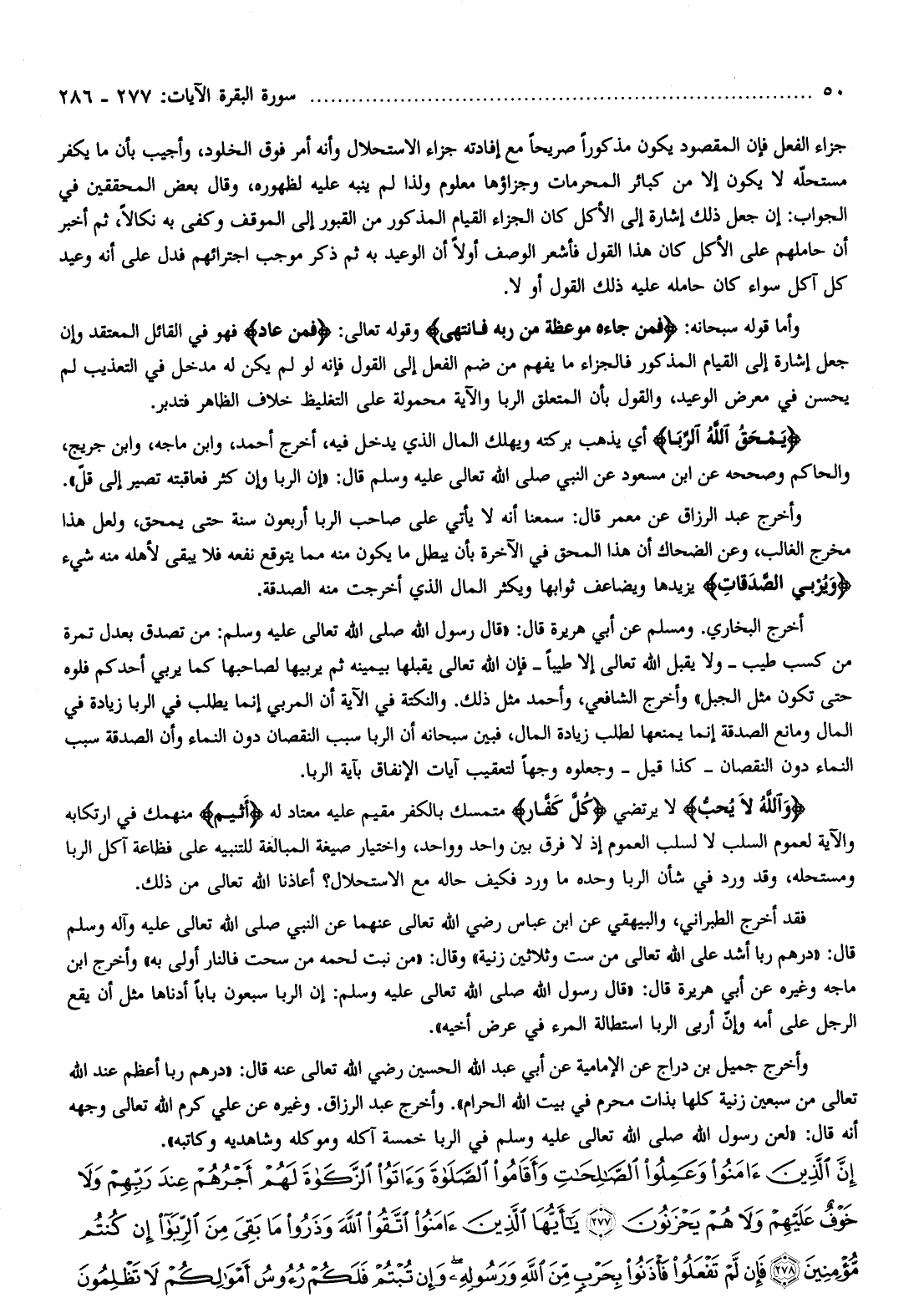 وأخرج عبد الرزاق عن معمر قال: سمعنا أنه لا يأتي على صاحب الربا أربعون سنة حتى يمحق، ولعل هذا مخرج الغالب، وعن الضحاك أن هذا المحق في الآخرة بأن يبطل ما يكون منه مما يتوقع نفعه فلا يبقى لأهله منه شيء وَيُرْبِي الصَّدَقاتِ يزيدها ويضاعف ثوابها ويكثر المال الذي أخرجت منه الصدقة.