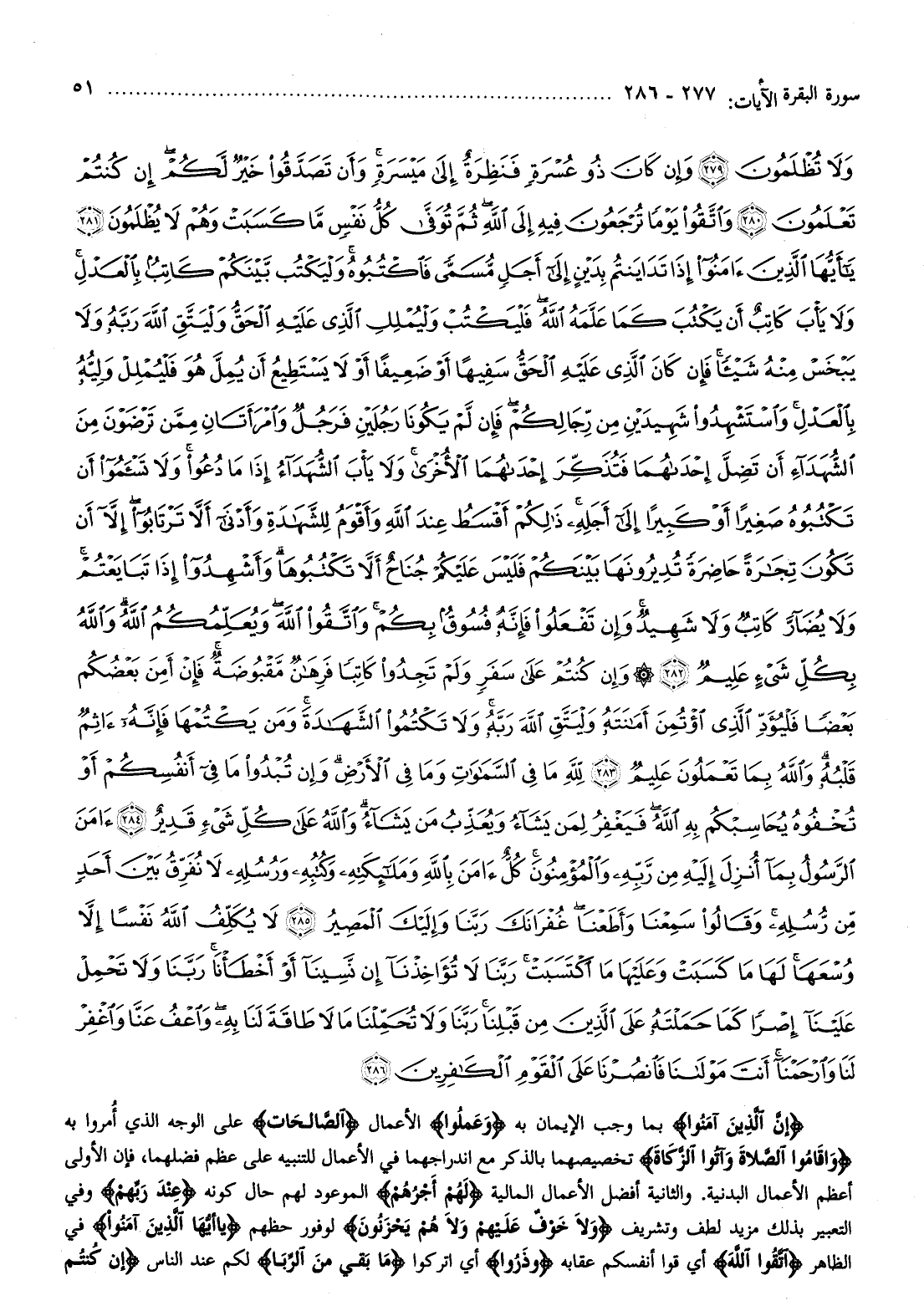إِنَّ الَّذِينَ آمَنُوا بما وجب الإيمان به وَعَمِلُوا الأعمال الصَّالِحاتِ على الوجه الذي أمروا به وَأَقامُوا الصَّلاةَ وَآتَوُا الزَّكاةَ تخصيصهما بالذكر مع اندارجهما في الأعمال للتنبيه على عظم فضلهما، فإن الأولى أعظم الأعمال البدنية. والثانية أفضل الأعمال المالية لَهُمْ أَجْرُهُمْ الموعود لهم حال كونه عِنْدَ رَبِّهِمْ وفي التعبير بذلك مزيد لطف وتشريف وَلا خَوْفٌ عَلَيْهِمْ وَلا هُمْ يَحْزَنُونَ لوفور حظهم يا أَيُّهَا الَّذِينَ آمَنُوا في الظاهر اتَّقُوا اللَّهَ أي قوا أنفسكم عقابه وَذَرُوا أي اتركوا ما بَقِيَ مِنَ الرِّبا لكم عند الناس إِنْ كُنْتُمْ