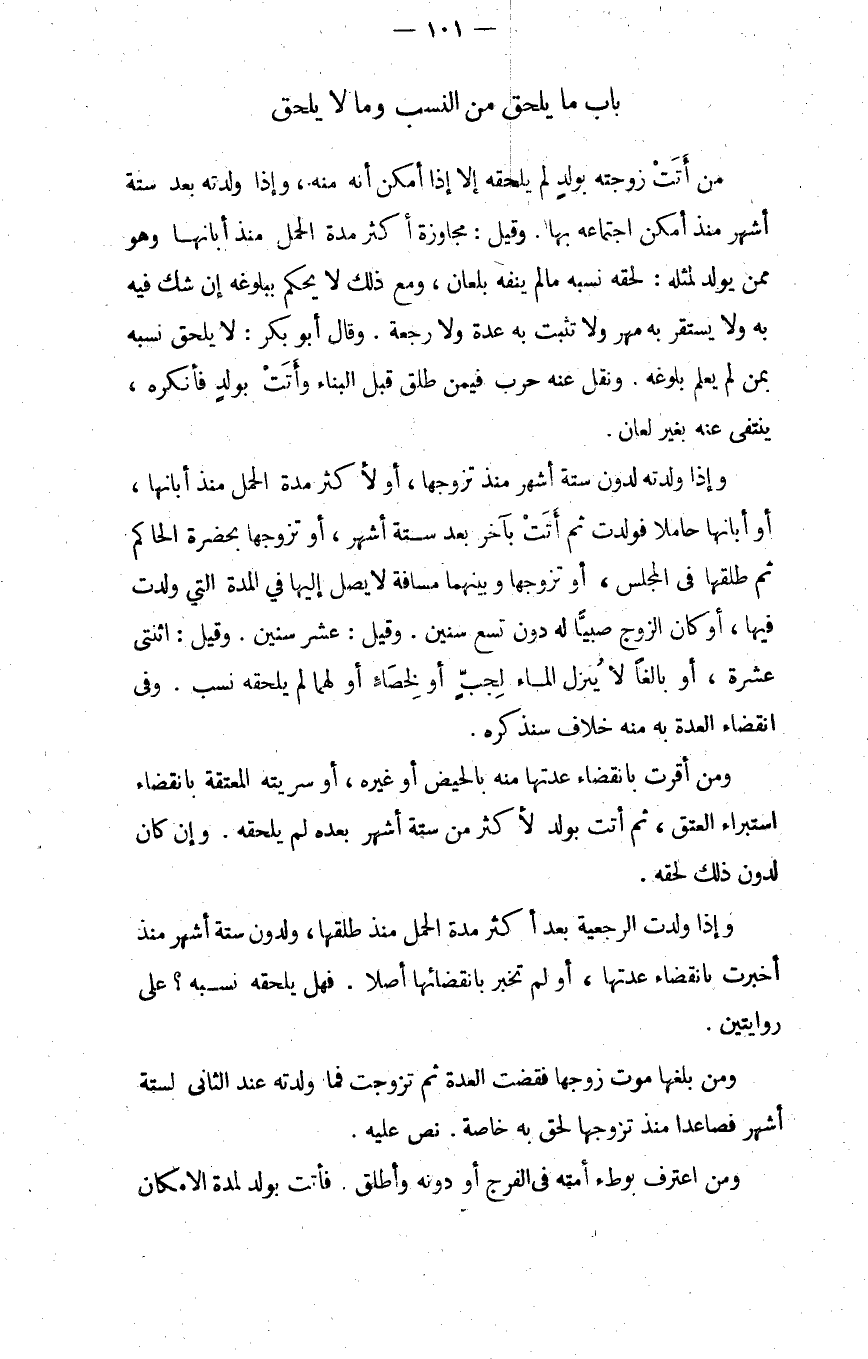 وإذا ولدته لدون ستة أشهر منذ تزوجها أو لأكثر مدة الحمل منذ أبانها أو أبانها حاملا فولدت ثم أتت بآخر بعد ستة أشهر أو تزوجها بحضرة الحاكم ثم طلقها في المجلس أو تزوجها وبينهما مسافة لا يصل إليها في المدة التي ولدت فيها أو كان الزوج صبيا له دون تسع سنين وقيل عشر سنين وقيل اثنتي عشرة أو بالغا لا ينزل الماء لجب أو لخصاء أو لهما لم يحلقه نسب وفي انقضاء العدة به منه خلاف سنذكره.