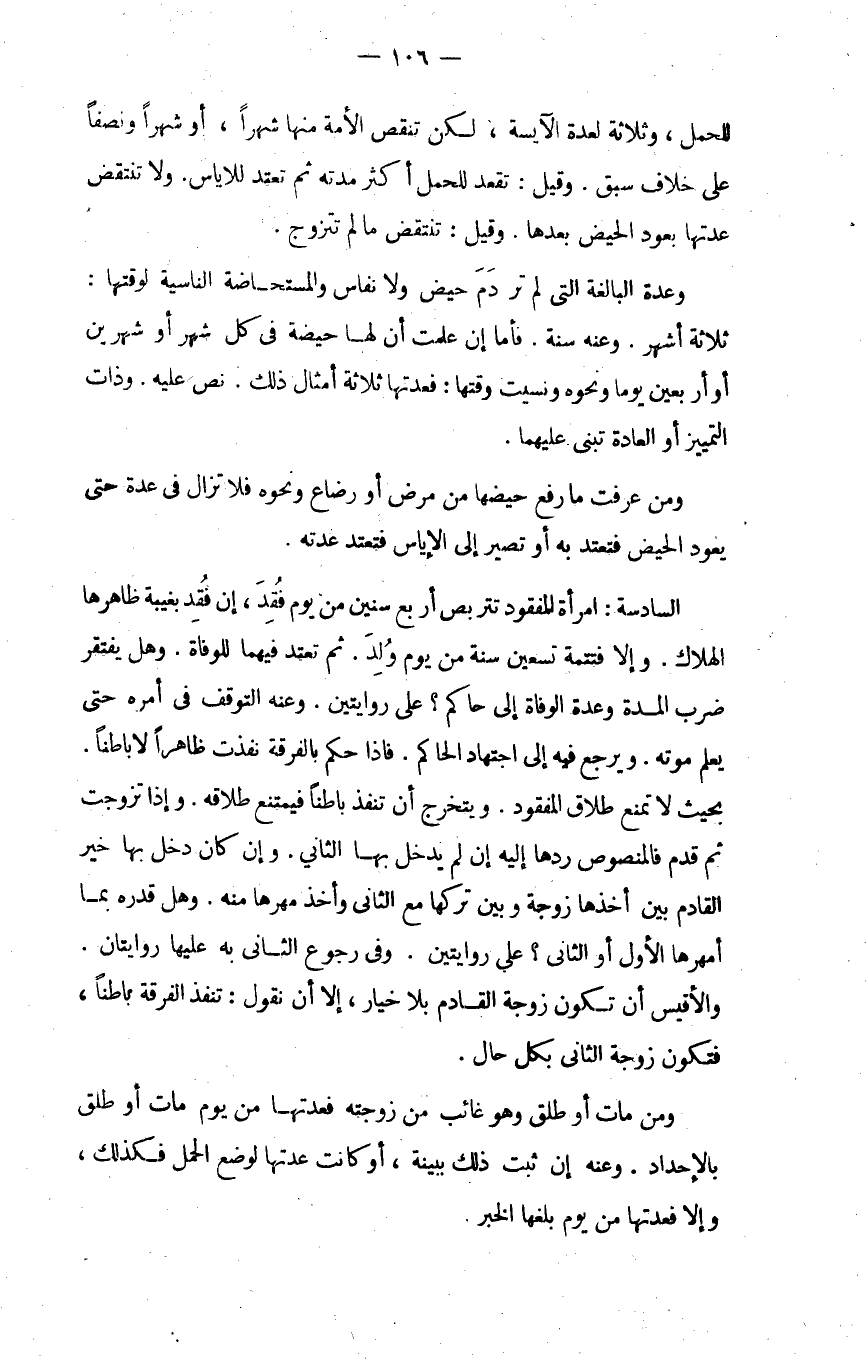 السادسة امرأة المفقود تتربص أربع سنين من يوم فقد إن فقد بغيبة ظاهرها الهلاك وإلا فتتمة تسعين سنة من يوم ولد ثم تعتد فيهما للوفاة وهل يفتقر ضرب المدة وعدة الوفاة إلى حاكم على روايتين وعنه التوقف في أمره حتى يعلم موته ويرجع فيه إلى اجتهاد الحاكم فإذا حكم بالفرقة نفذت ظاهرا لا باطنا بحيث لا تمنع طلاق المفقود ويتخرج أن تنفذ باطنا فيمتنع طلاقه وإذا تزوجت ثم قدم فالمنصوص ردها إليه إن لم يدخل بها الثاني وإن كان دخل بها خير القادم بين أخذها زوجة وبين تركها مع الثاني وأخذ مهرها منه وهل قدره بما أمهرها الأول أو الثاني على روايتين وفي رجوع الثاني به عليها روايتان والأقيس أن تكون زوجة القادم بلا خيار إلا أن نقول تنفذ الفرقة باطنا فتكون زوجة الثاني بكل حال.
