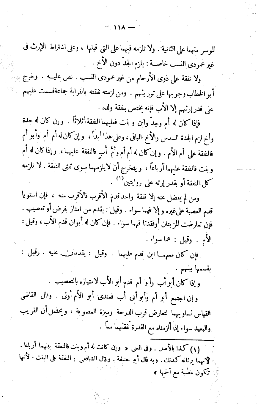 1 كذا بالأصل وفي المغني "وإن كانت له أم وبنت فالنفقة بينهما أرباعا لأنهما يرثانه كذلك وبه قال أبو حنيفة وقال الشافعي: النفقة على البنت لأنها تكون عصبة مع أخيها".