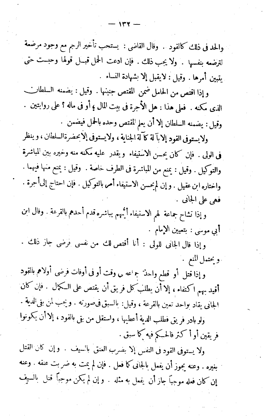 ولا يستوفى القود إلا بآلة الجناية ولا يستوفى إلا بحضرة السلطان وينظر في الولي فإن كان يحسن الاستيفاء ويقدر عليه مكنه منه وخيره بين المباشرة والتوكيل وقيل يمنع من المباشرة في الطرف خاصة وقيل يمنع منها فيهما واختاره ابن عقيل وإن لم يحسن الاستيفاء أمر بالتوكيل فإن احتاج إلى أجرة فهي على الجاني.