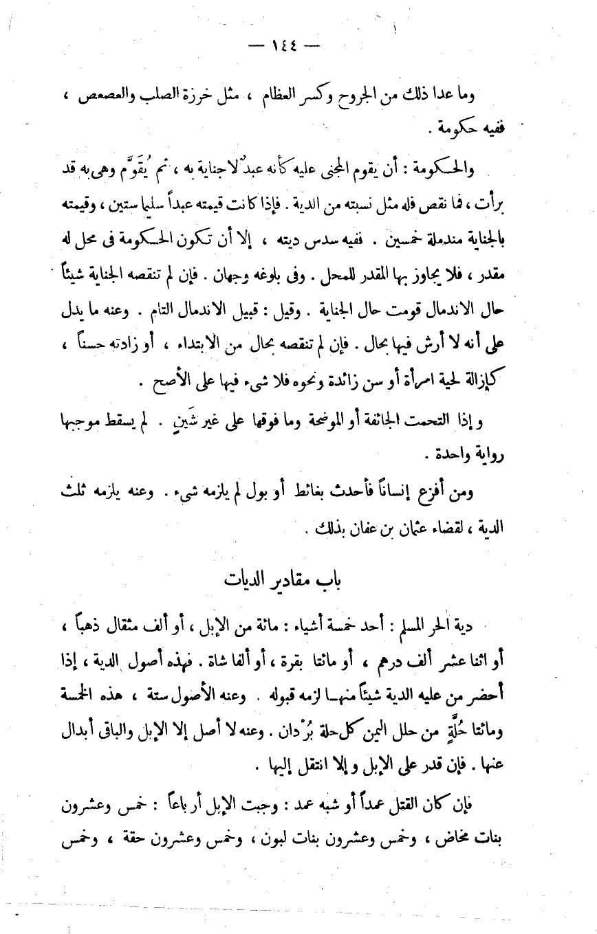 دية الحر المسلم أحد خمسة أشياء مائة من الإبل أو ألف مثقال ذهبا أو اثنا عشر ألف درهم أو مائتا بقرة أو ألفا شاة فهذه أصول الدية إذا أحضر من عليه الدية شيئا منها لزمه قبوله وعنه الأصول ستة هذه الخمسة ومائتا حلة من حلل اليمن كل حلة بردان وعنه لا أصل إلا الإبل والباقي أبدال عنها فإن قدر على الإبل وإلا انتقل إليها.