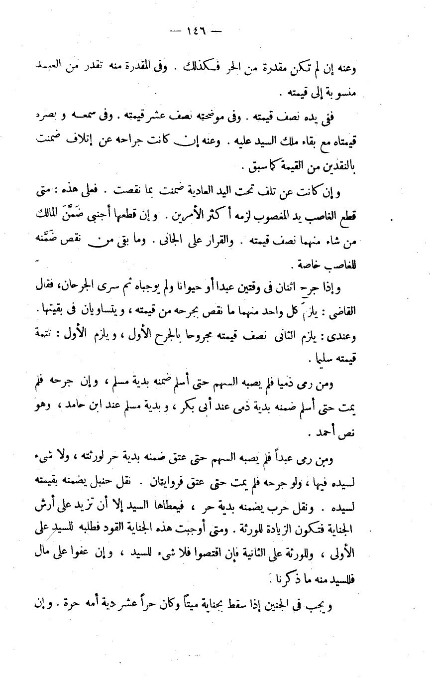 وعنه إن لم تكن مقدرة من الحر فكذلك وفي المقدرة منه تقدر من العبد منسوبة إلى قيمته.