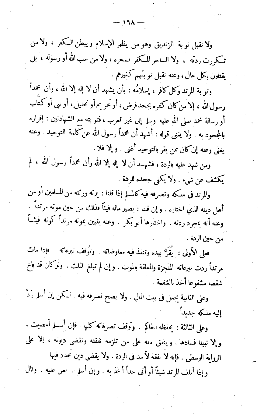 ومن شهد عليه بالردة فشهد أن إله إلا الله وأن محمدا رسول الله لم يكشف عن شيء ولا يكفي جحده للردة.