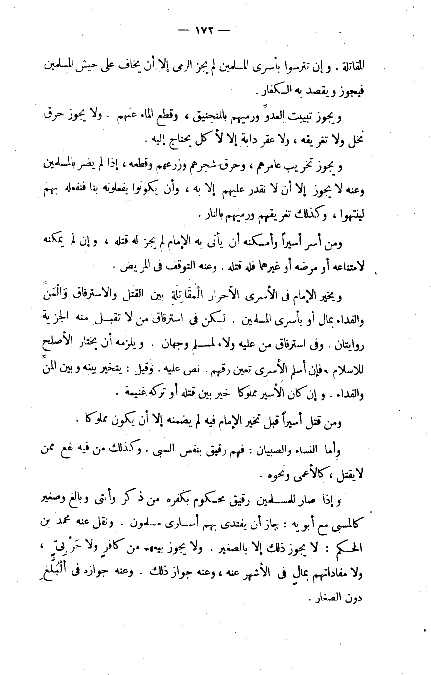 المقاتلة وأن تترسوا بأسرى المسلمين لم يجزى الرمي إلا أن يخاف على جيش المسلمين فيجوز ويقصد به الكفار.