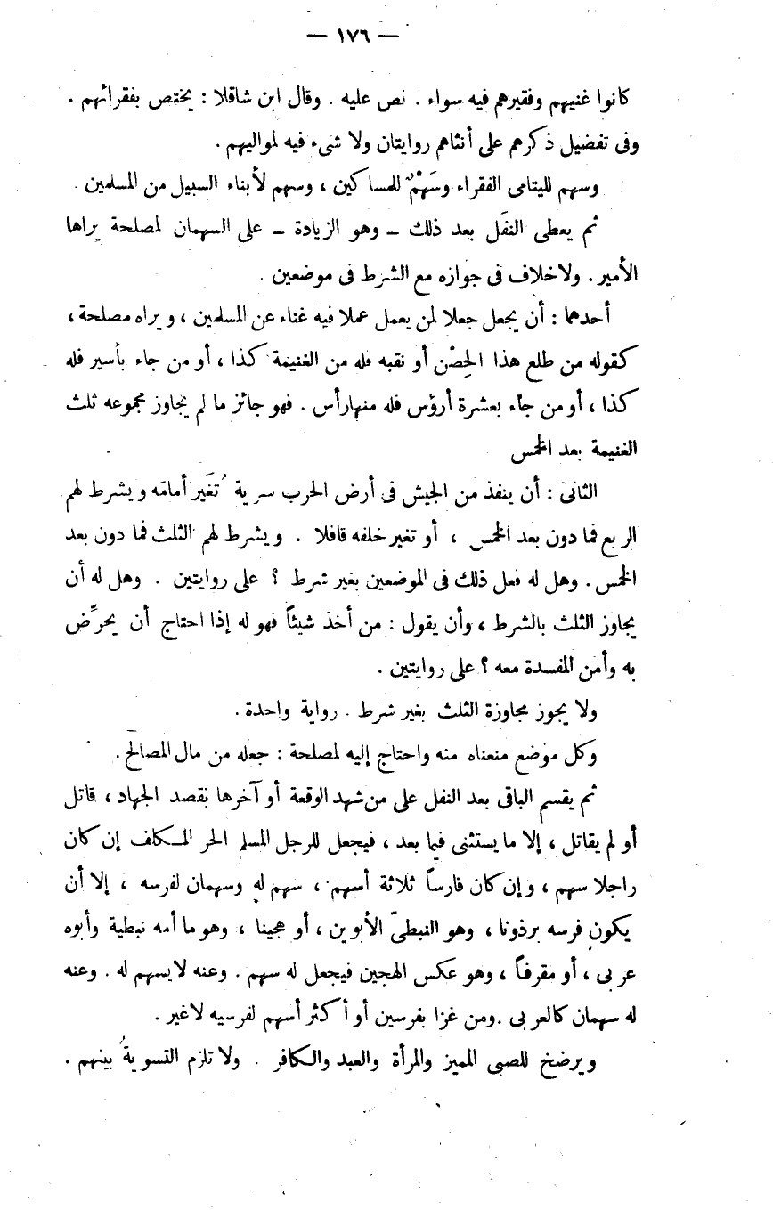 الثاني أن ينفذ من الجيش في أرض الحرب سرية تغير أمامه ويشرط لهم الربع فما دون بعد الخمس أو تغير خلفه قافلا ويشرط لهم الثلث فما دون بعد الخمس وهل له فعل ذلك في الموضعين بغير شرط على روايتين وهل له أن يجاوز الثلث بالشرط وأن يقول من أخذ شيئا فهو له إذا احتاج أن يحرض به وأمن المفسدة معه على روايتين.