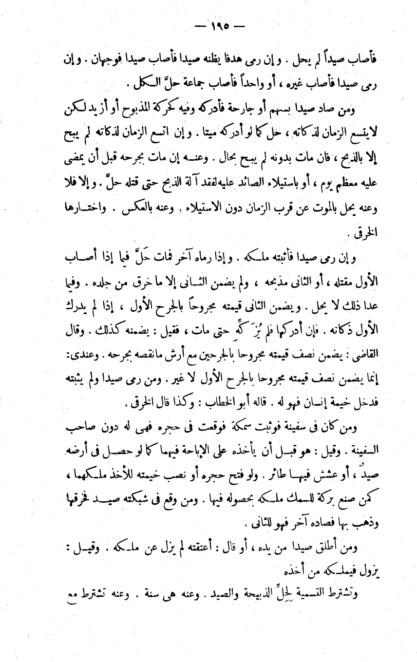 ومن صاد صيدا بسهم أو جارحه فأدركه وفيه كحركة المذبوح أو أزيد لكن لا يتسع الزمان لذكاته حل كما لو أدركه ميتا وإن اتسع الزمان لذكاته لم يبح إلا بالذبح فان مات بدونه لم يبح بحال وعنه إن مات بجرحه قبل أن يمضي عليه معظم يوم أو باستيلاء الصائد عليه لفقد آلة الذبح حتى قتله حل وإلا فلا وعنه يحل بالموت عن قرب الزمان دون الاستيلاء وعن بالعكس واختارها الخرقي.