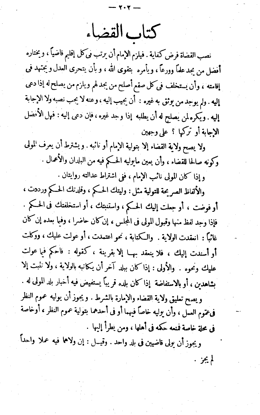 ولا يصح ولاية القضاء إلا بتولية الإمام أو نائبه ويشترط أن يعرف المولى وكونه صالحا للقضاء وأن يعين ما يوليه الحكم فيه من البلدان والأعمال.