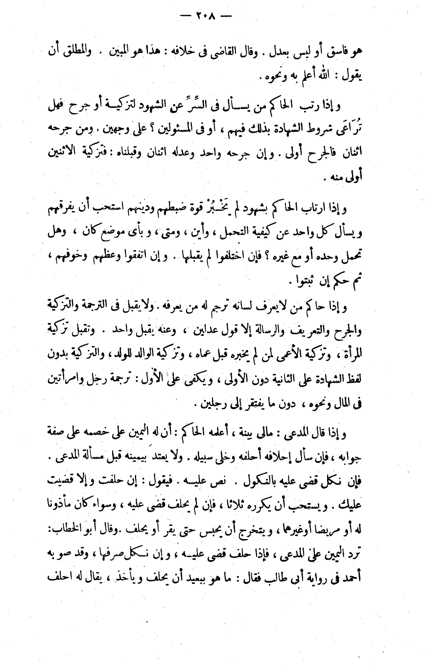 وإذا حاكم من لا يعرف لسانه ترجم له من يعرفه ولا يقبل في الترجمة والتزكية والجرح والتعريف والرسالة إلا قول عدلين وعنه يقبل واحد وتقبل تزكية المرأة وتزكية الأعمى لمن لم يخبره قبل عماه وتزكية الوالد للولد والتزكية بدون لفظ الشهادة على الثانية دون الأولى ويكفي على الأول ترجمة رجل وامرأتين في المال ونحوه دون ما يفتقر إلى رجلين.
