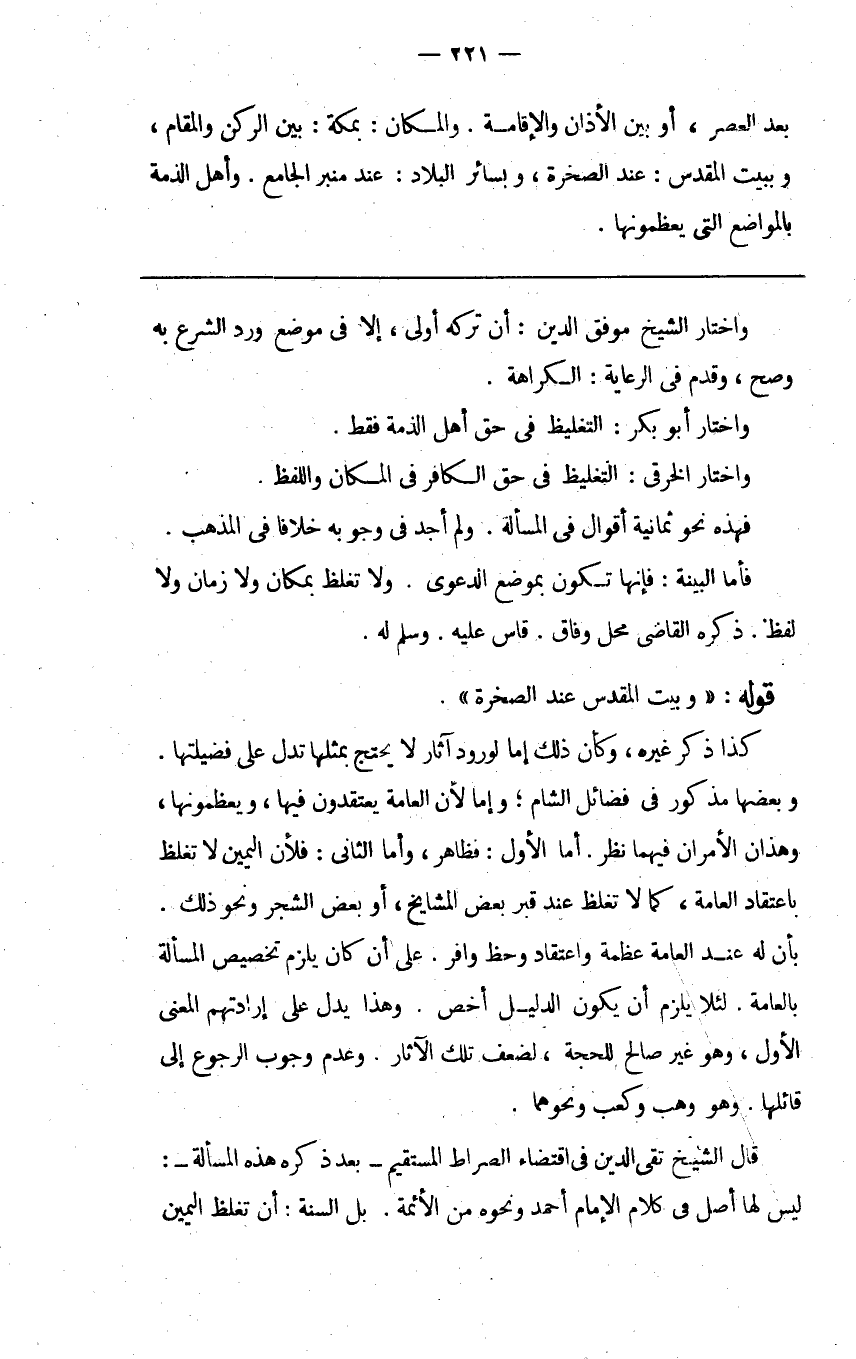 قال الشيخ تقي الدين في اقتضاء الصراط المستقيم بعد ذكره هذه المسألة ليس لها أصل في كلام الإمام أحمد ونحوه من الأئمة بل السنة أن تغلظ اليمين