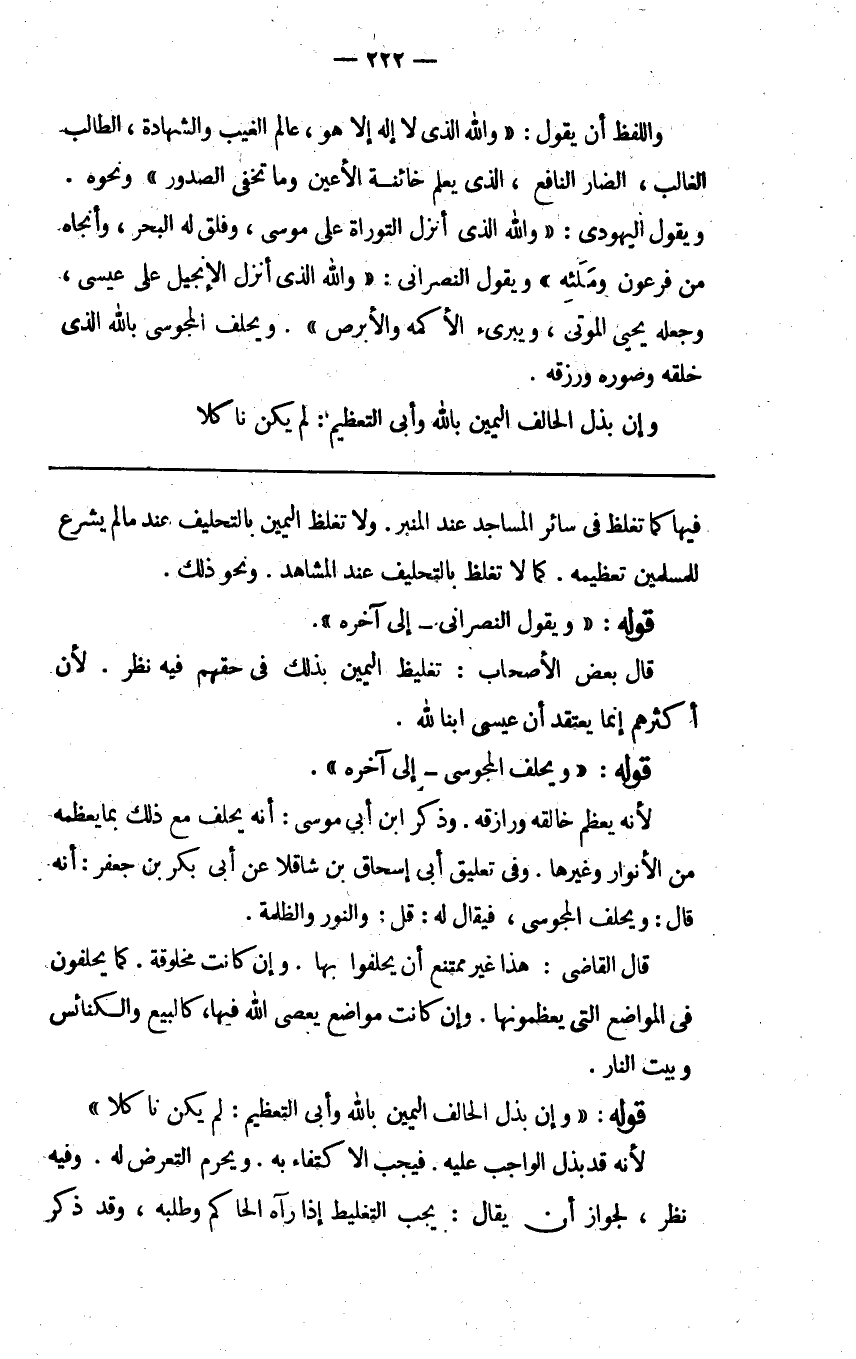 واللفط أن يقول "والله الذي لا إله إلا هو عالم الغيب والشهادة الطالب الغالب الضار النافع الذي يعلم خائنة الأعين وما تخفي الصدور" ونحوه ويقول اليهودي "والله الذي أنزل التوراة على موسى وفلق له البحر وأنجاه من فرعون وملئه" ويقول النصراني "والله الذي أنزل الأنجيل على عيسى وجعله يحيى الموتى ويبرىء الأكمه والأبرص" ويحلف المجوسي بالله الذي خلقه وصوره ورزقه.