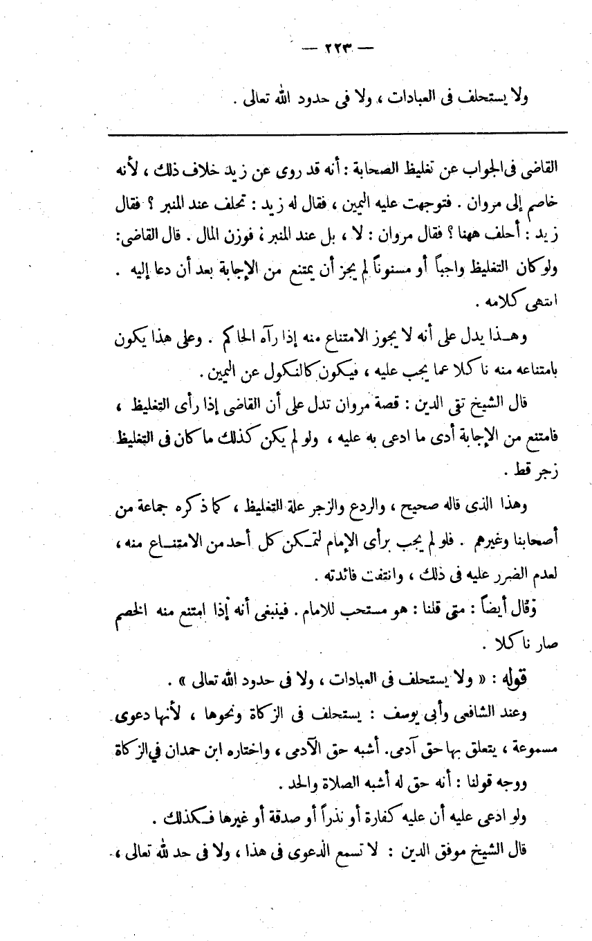 قال الشيخ تقي الدين قصة مروان تدل على أن القاضي إذا رأى التغليظ فامتنع من الإجابة أدى ما ادعى به عليه ولو لم يكن كذلك ما كان في التغليظ زجر قط.