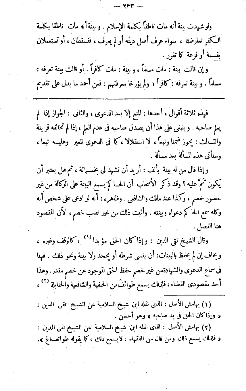 2 بهامش الأصل: الذي نقله ابن شيخ السلامية عن الشيخ تقي الدين: "فلذلك يسمع ذلك ومن قال من الفقهاء: لا يسمع ذلك، كما يقوله طوائف الخ"