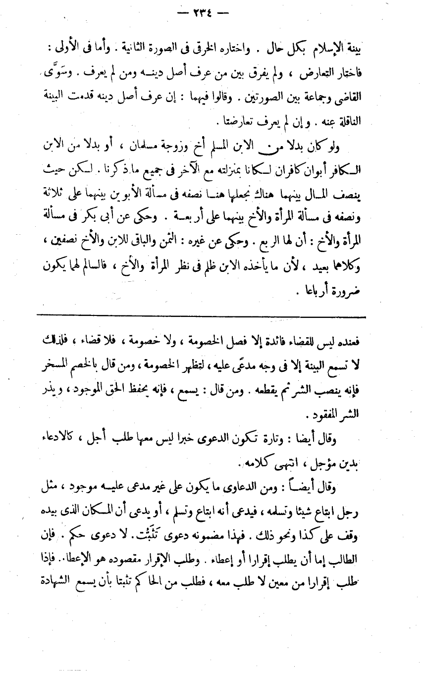 بينة الإسلام بكل حال واختاره الخرقي في الصورة الثانية وأما في الأولى فاختار التعارض ولم يفرق بين من عرف أصل دينه ومن لم يعرف وسوى القاضي وجماعة بين الصورتين وقالوا فيهما إن عرف أصل دينه قدمت البينة الناقلة عنه وإن لم يعرف تعارضتا.