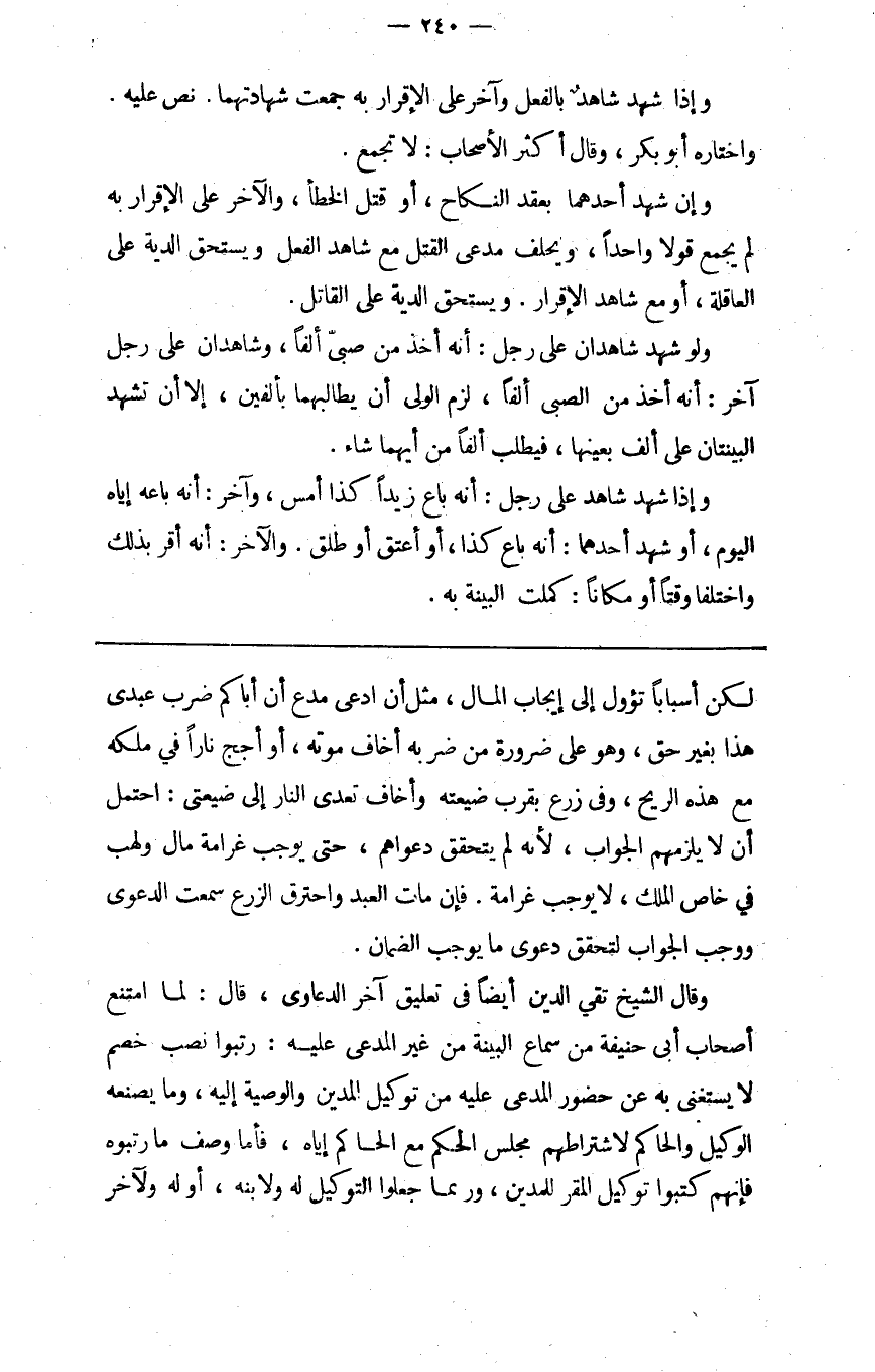 وقال الشيخ تقي الدين أيضا في تعليق آخر الدعاوى قال لما امتنع أصحاب أبي حنيفة من سماع البينة من غير المدعى عليه رتبوا نصب خصم لا يستغنى به عن حضور المدعى عليه من توكيل المدين والوصية إليه وما يصنعه الوكيل والحاكم لاشتراطهم مجلس الحكم مع الحاكم إياه فأما وصف ما رتبوه فإنهم كتبوا توكيل المقر للمدين وربما جعلوا التوكيل له ولابنه أو له ولآخر