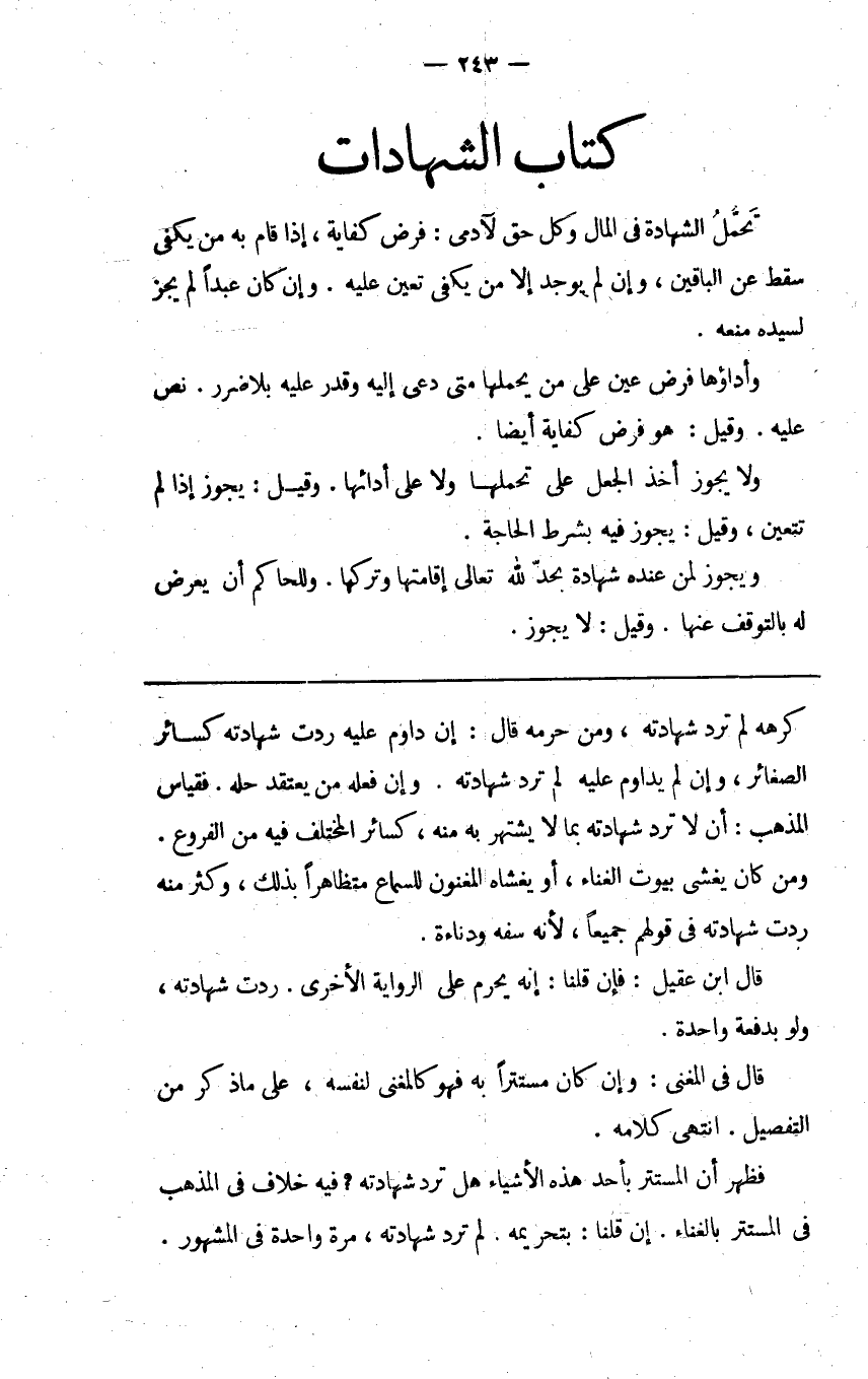 تحمل الشهادة في المال وكل حق لآدمي فرض كفاية إذا قام به من يكفي سقط عن الباقين وإن لم يوجد إلا من يكفي تعين عليه وإن كان عبدا لم يجز لسيده منعه.