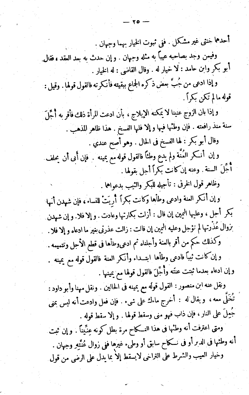 وإن أنكر العنة وادعى وطأها وكانت بكرا أريت للنساء فإن شهدن أنها بكر أجل وعليها اليمين إن قال أزلت بكارتها وعادت وإلا فلا وإن شهدن بزوال عذرتها لم تؤجل وعليه اليمين إن قالت زالت عذرتي بغير ما ادعاه وإلا فلا.