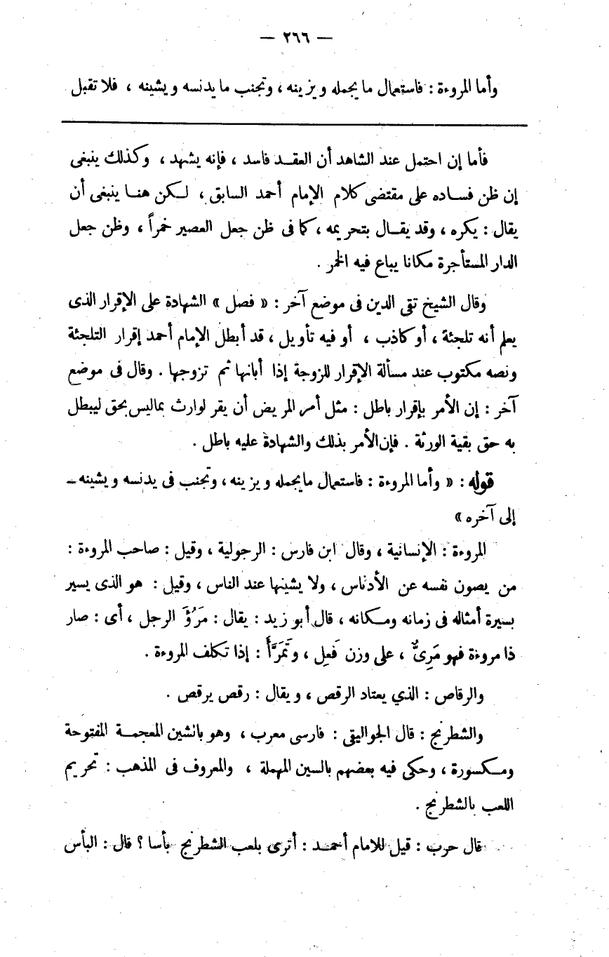 وأما المروءة فاستعمال ما يجمله ويزينه وتجنب ما يدنسه ويشينه فلا تقبل