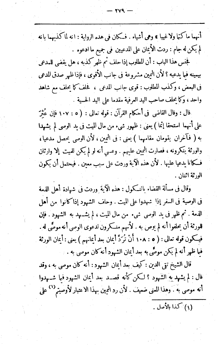 قال الشيخ تقي الدين كيف بعد أيمان الشهود أنه كان موصى به وقد قال لم يشهد به الشهود لكن كأنه قصد بعد أيمان الشهود فيما شهدوا أنه موصى به وهذا المعنى ضعيف لأن رد اليمين بهذا الاعتبار لأوصيتم1 على