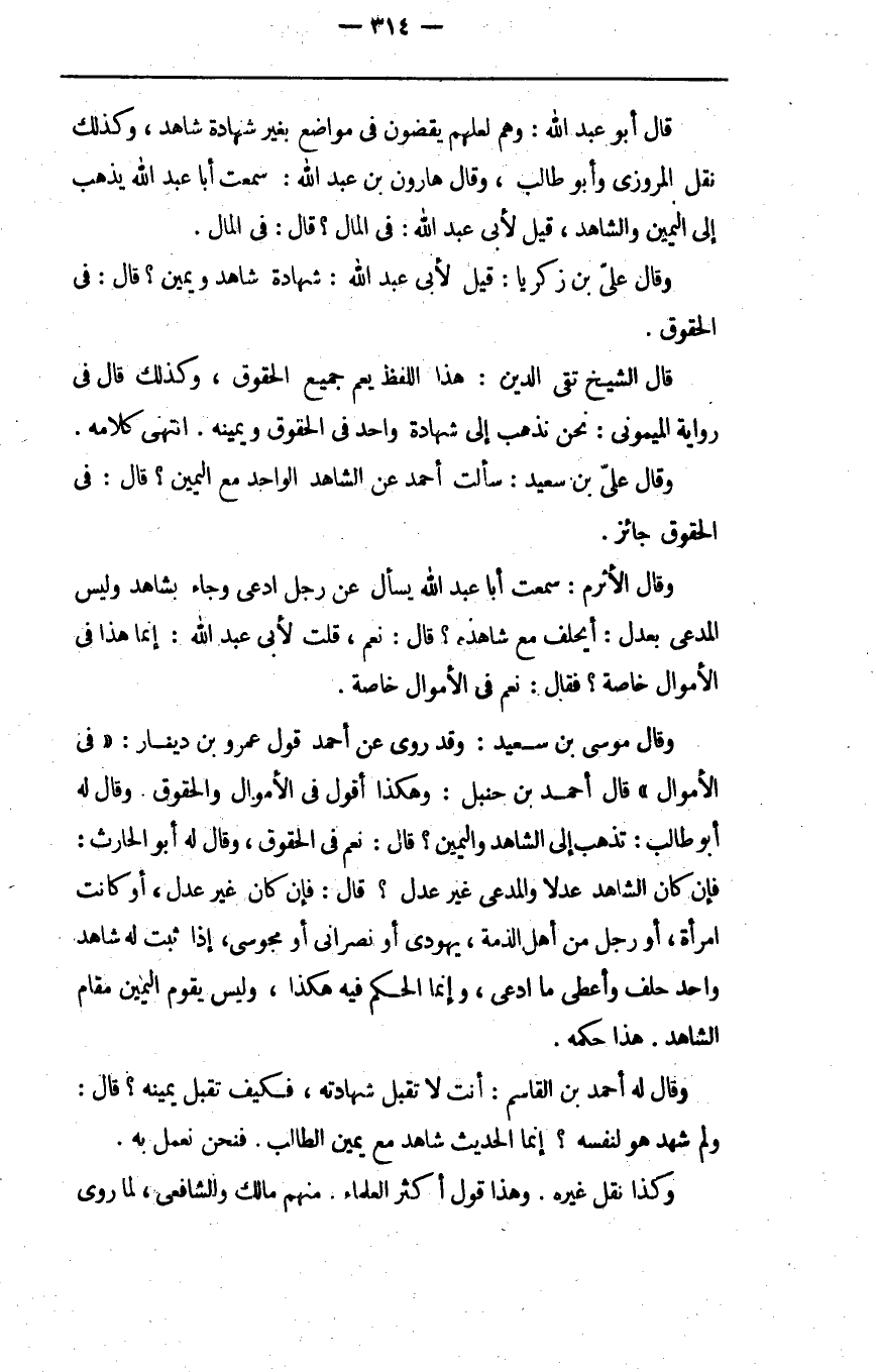 قال أبو عبد الله وهم لعلهم يقضون في مواضع بغير شهادة شاهد وكذلك نقل المروزي وأبو طالب وقال هارون بن عبد الله سمعت أبا عبد الله يذهب إلى اليمين والشاهد قيل لأبي عبد الله في المال قال في المال.