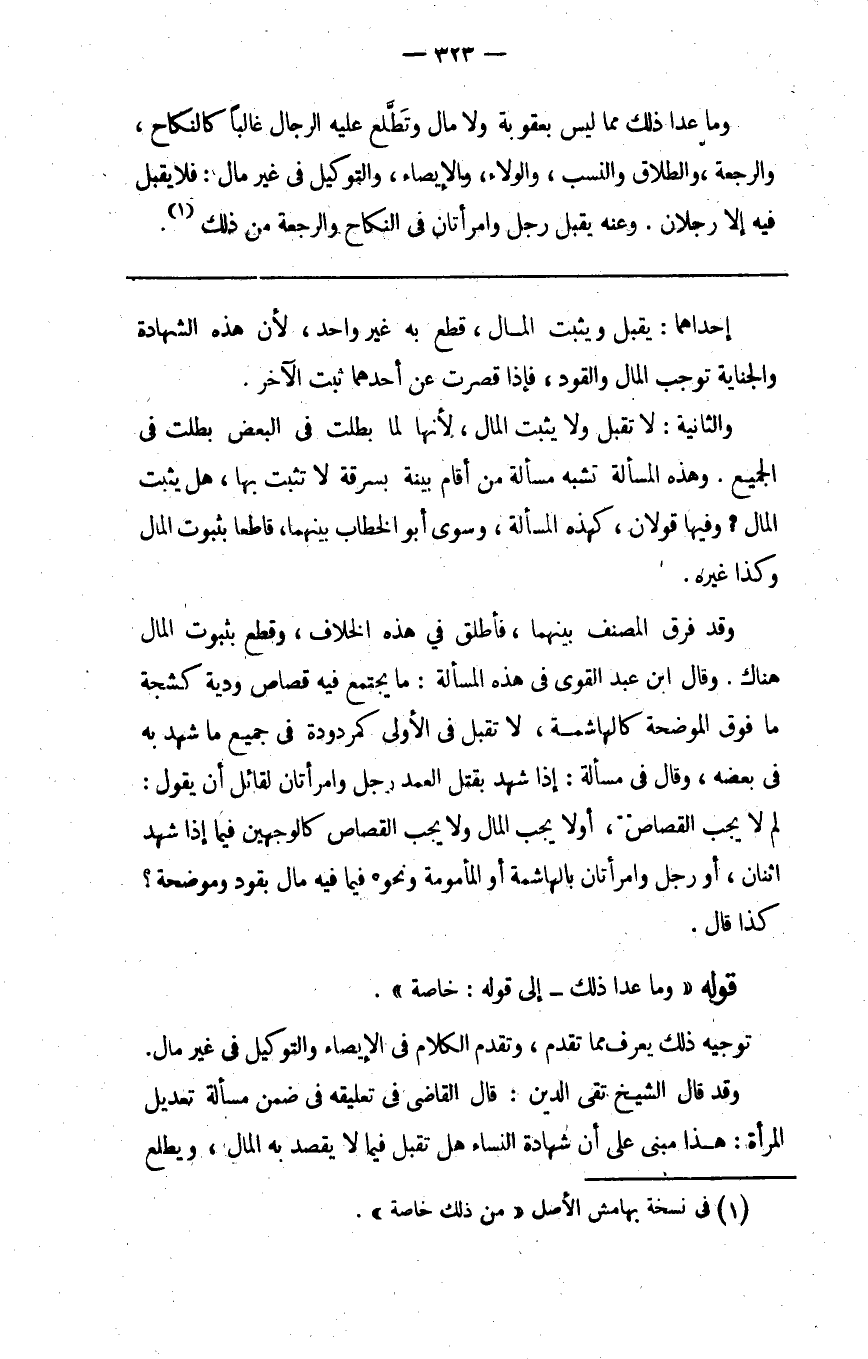 وما عدا ذلك مما ليس بعقوبة ولا مال وتطلع عليه الرجال غالبا كالنكاح والرجعة والطلاق والنسب والولاء والإيصاء والتوكيل في غير مال فلا يقبل فيه إلا رجلان وعنه يقبل رجل وامرأتان في النكاح والرجعة من ذلك1.