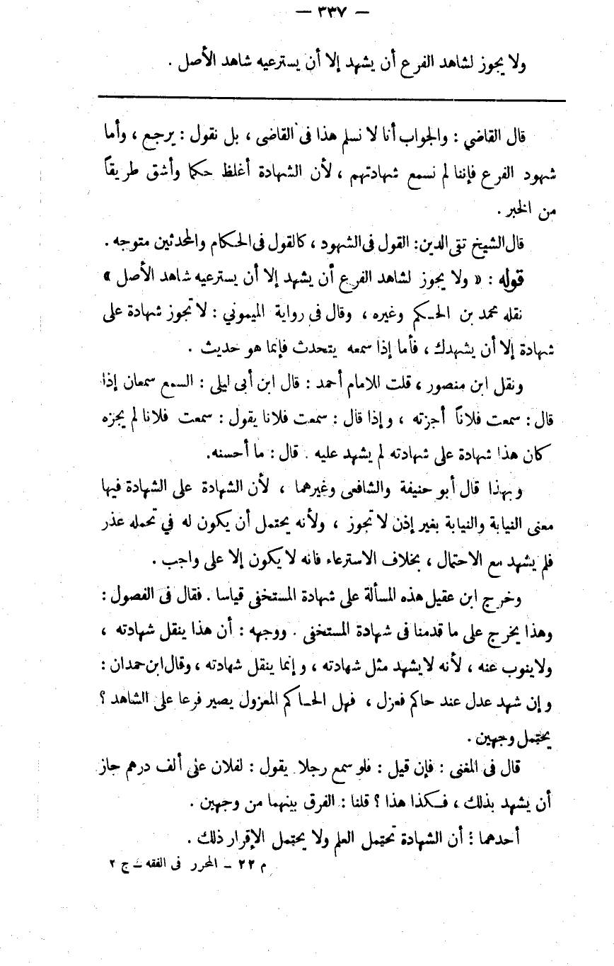 ولا يجوز لشاهد الفرع أن يشهد إلا أن يسترعيه شاهد الأصل.