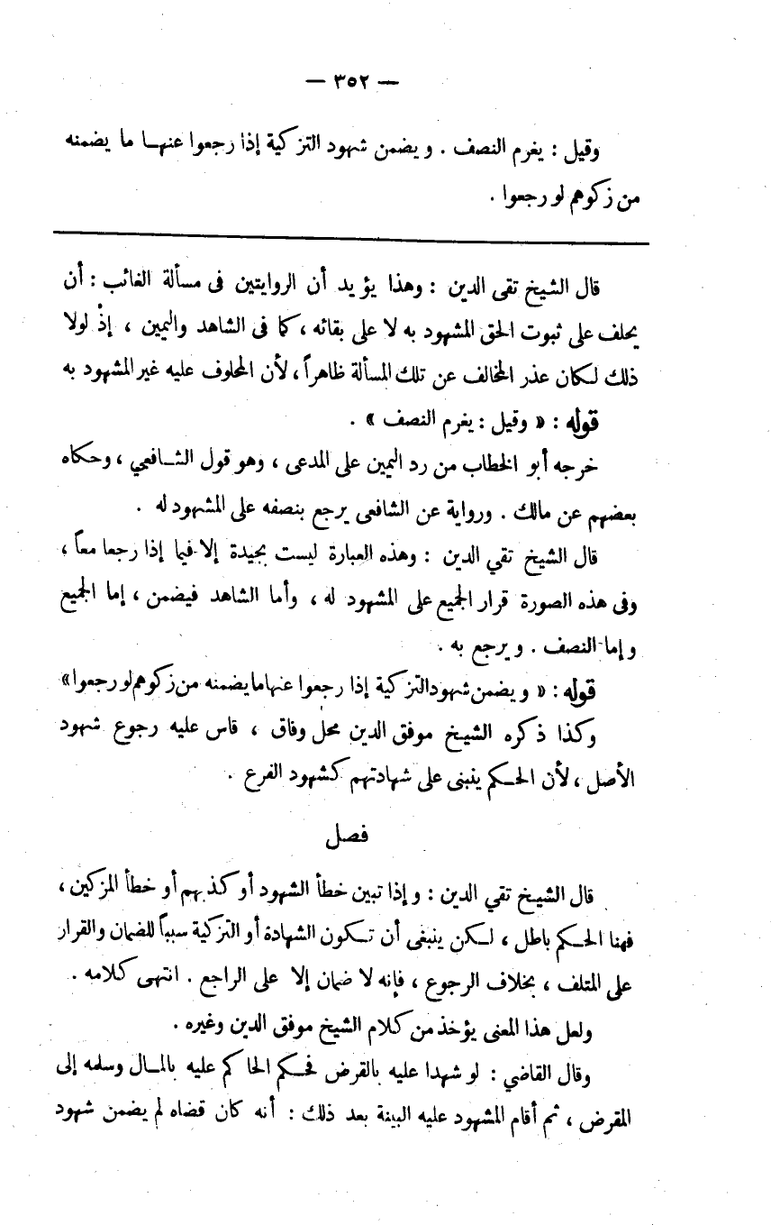 قال الشيخ تقي الدين وهذه العبارة ليست بجيدة إلا فيما إذا رجعا معا وفي هذه الصورة قرار الجميع على المشهود له وأما الشاهد فيضمن إما الجميع وإما النصف ويرجع به.
