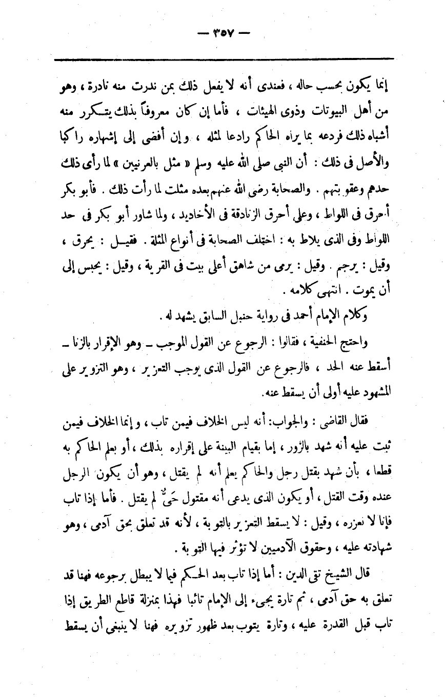 واحتج الحنفية فقالوا الرجوع عن القول الموجب وهو الإقرار بالزنا أسقط عنه الحد فالرجوع عن القول الذي يوجب التعزير وهو التزوير على المشهود عليه أولى أن يسقط عنه.