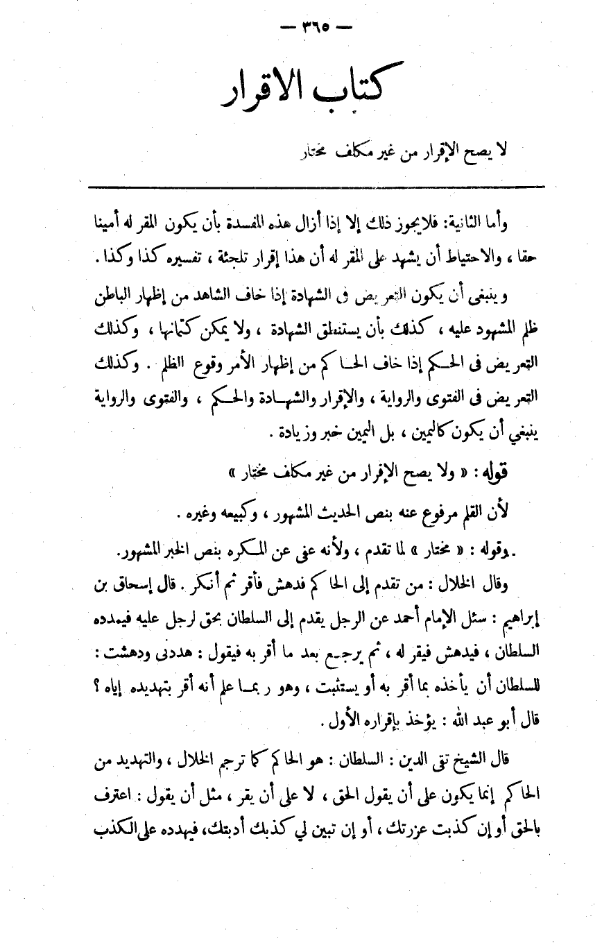 قال الشيخ تقي الدين السلطان هو الحاكم كما ترجم الخلال والتهديد من الحاكم إنما يكون على أن يقول الحق لا على أن يقر مثل أن يقول اعترف بالحق أو أن كذبت عزرتك أو إن تبين لي كذبك أدبتك فيهدده على الكذب