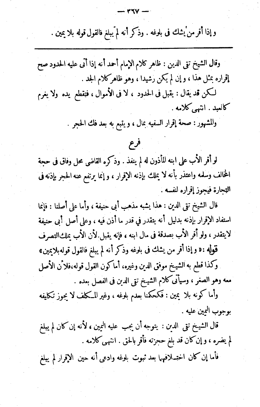 وقال الشيخ تقي الدين ظاهر كلام الإمام أحمد أنه إذا أتى عليه الحدود صح إقراره بمثل هذا وإن لم يكن رشيدا وهو ظاهر كلام الجد.