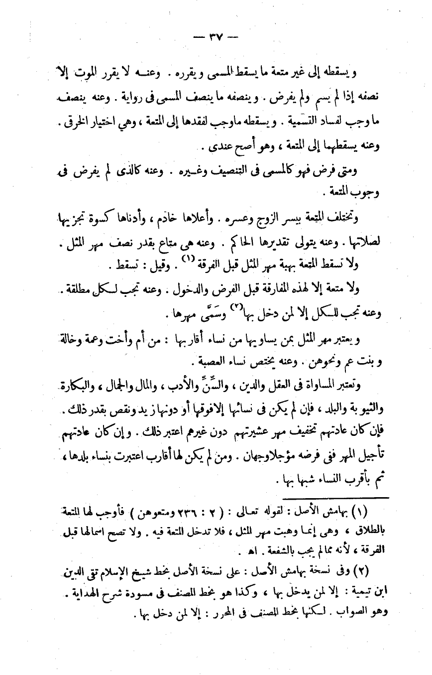 1 بهامش الأصل: لقوله تعالى: 236:2 {وَمَتِّعُوهُنَّ} فأوجب لها المتعة بالطلاق، وهي إنما وهبت مهر المثل فلا تدخل المتعة فيه ولا تصح اسما لها قبل الفرقة، لأنه مما لم يجب بالشفقة. اهـ