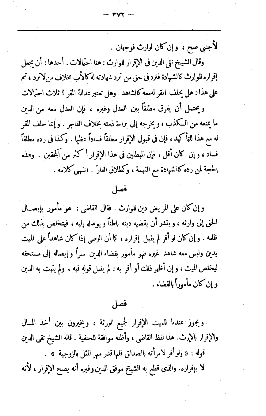 ويحتمل أن يفرق مطلقا بين العدل وغيره فإن العدل معه من الدين ما يمنعه من الكذب ويخرجه إلى براءة ذمته بخلاف الفاجر وإنما حلف المقر له مع هذا للتأكيد فإن في قبول الإقرار مطلقا فسادا عظيما وكذا في رده مطلقا فساد وإن كان أقل فإن المبطلين في هذا الإقرار أكثر من المحقين وهذه الحجة لمن رده كالشهادة مع التهمة وكطلاق الفار انتهى كلامه.