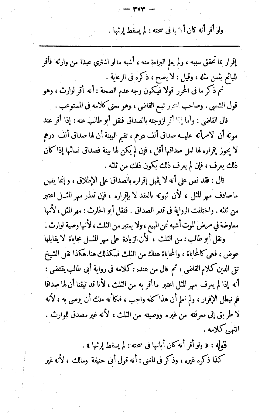 قال فقد نص على أنه لا يقبل إقراره بالصداق على الإطلاق وإنما يقبل ما صادف مهر المثل لأن ثبوته بالعقد لا بإقراره فإن تعذر مهر المثل اعتبر من ثلثه واختلفت الرواية في قدر الصداق فنقل أبو الحارث مهر المثل لأنها معاوضة في مرض الموت أشبه ثمن المبيع ولا يعتبر من الثلث لأنها وصية لوارث.