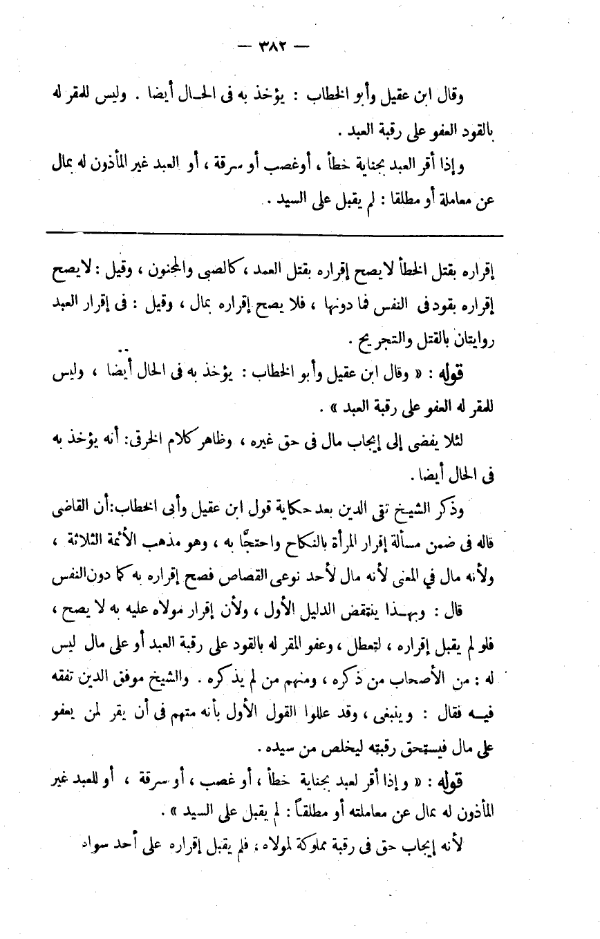 إقراره بقتل الخطأ لا يصح إقراره بقتل العمد كالصبي والمجنون وقيل لا يصح إقراره بقود في النفس فما دونها فلا يصح إقراره بمال وقيل في إقرار العبد روايتان بالقتل والتجريح.