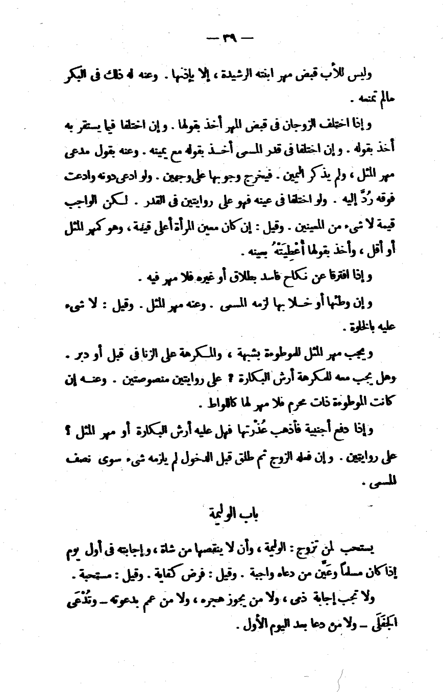 يستحب لمن تزوج الوليمة وأن لا ينقصها من شاة وإجابته في أول يوم إذا كان مسلما وعين من دعاه واجبة وقيل فرض كفاية وقيل مستحبة.