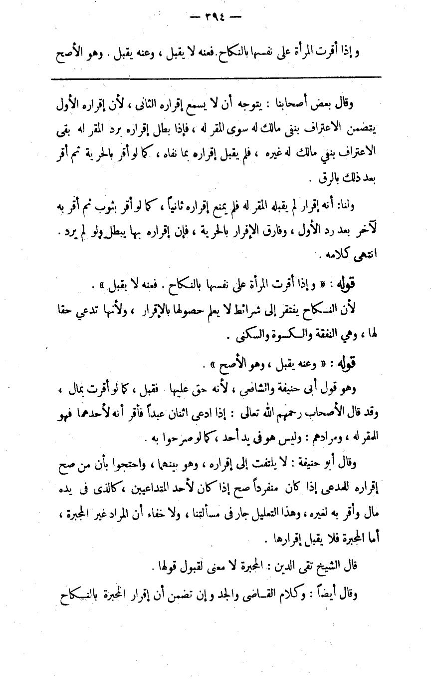 قوله: "وإذا أقرت المرأة على نفسها بالنكاح فعنه لا يقبل".