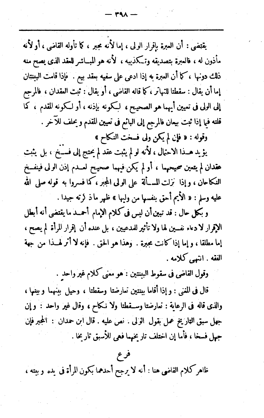 يؤيد هذا الاحتمال لأنه لو لم يثبت عقد لم يحتج إلى فسخ بل يثبت عقدان لم يتعين صحيحهما أو لم يكن فيهما صحيح لعدم إذن الولي فينفسخ النكاحان وإذا نزلت المسألة على الولي المجبر كما فسروا به قوله صلى الله عليه وسلم: "الأيم أحق بنفسها من وليها" ظهر ما ذكرته جيدا.