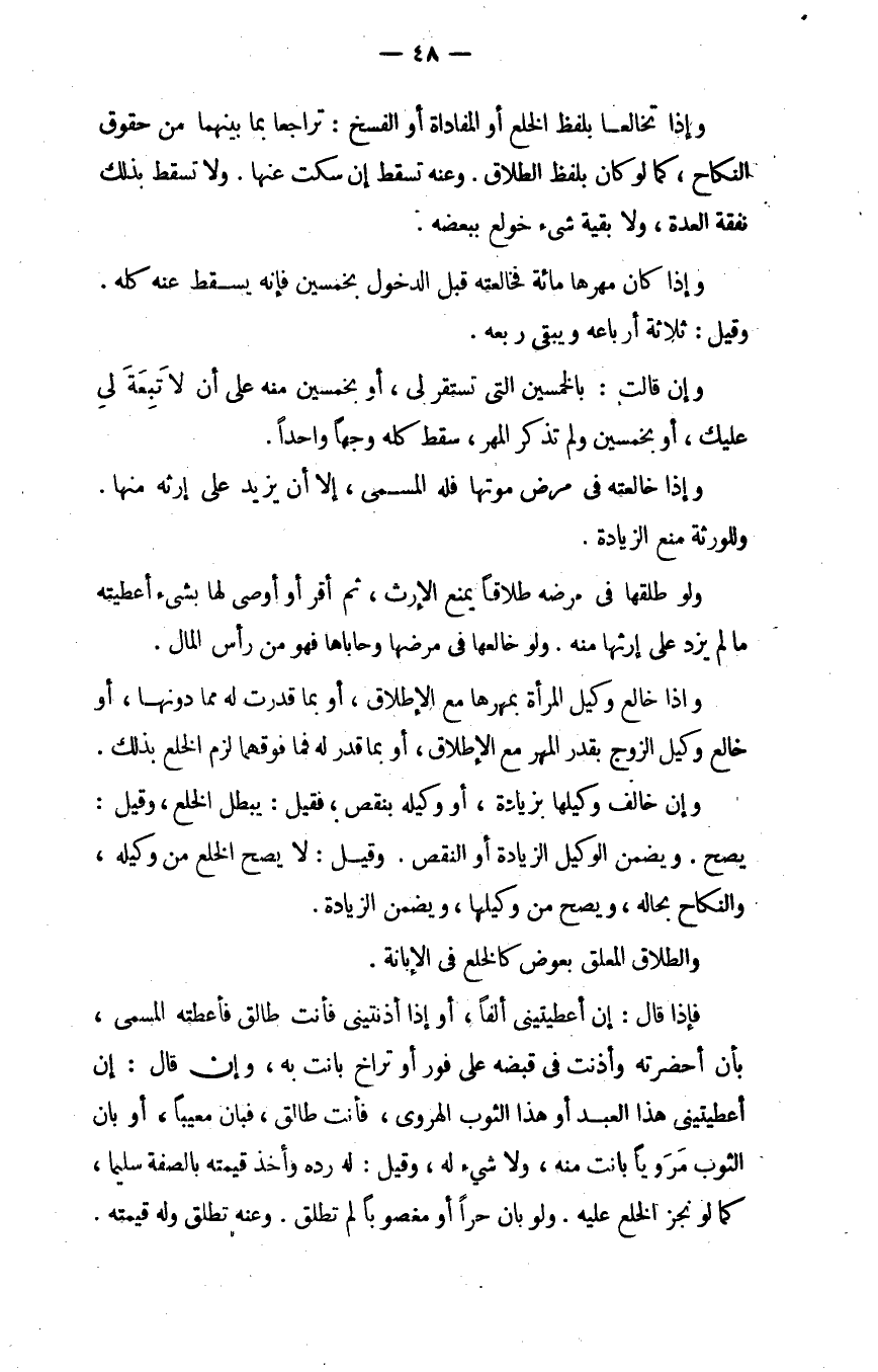 وإذا كان مهرها مائة فخالعته قبل الدخول بخمسين فإنه يسقط عنه كله وقيل ثلاثة أرباعه ويبقى ربعه.