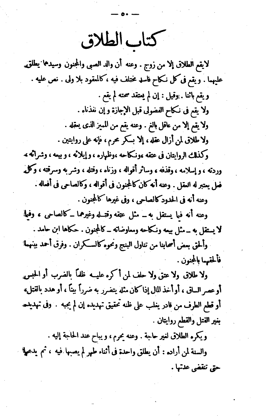 لا يقع الطلاق إلا من زوج وعنه أن والد الصبي والمجنون وسيدهما يطلق عليهما ويقع في كل نكاح فاسد مختلف فيه كالمعقود بلا ولي نص عليه.