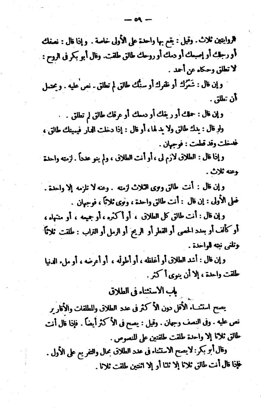 وقال أبو بكر لا يصح الاستثناء في عدد الطلاق بحال والتفريع على الأول فإذا قال أنت طالق ثلاثا إلا ثلثا أو إلا اثنتين طلقت ثلاثا.