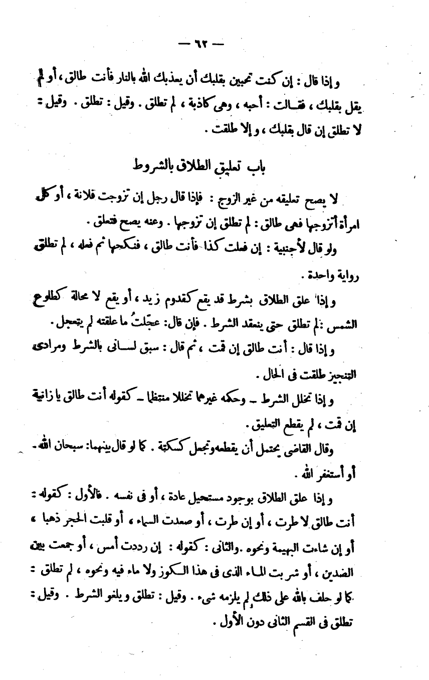 وإذا قال إن كنت تحبين بقلبك أن يعذبك الله بالنار فأنت طالق أو لم يقل بقلبك فقالت أحبه وهي كاذبة لم تطلق وقيل تطلق وقيل لا تطلق إن قال بقلبك وإلا طلقت.
