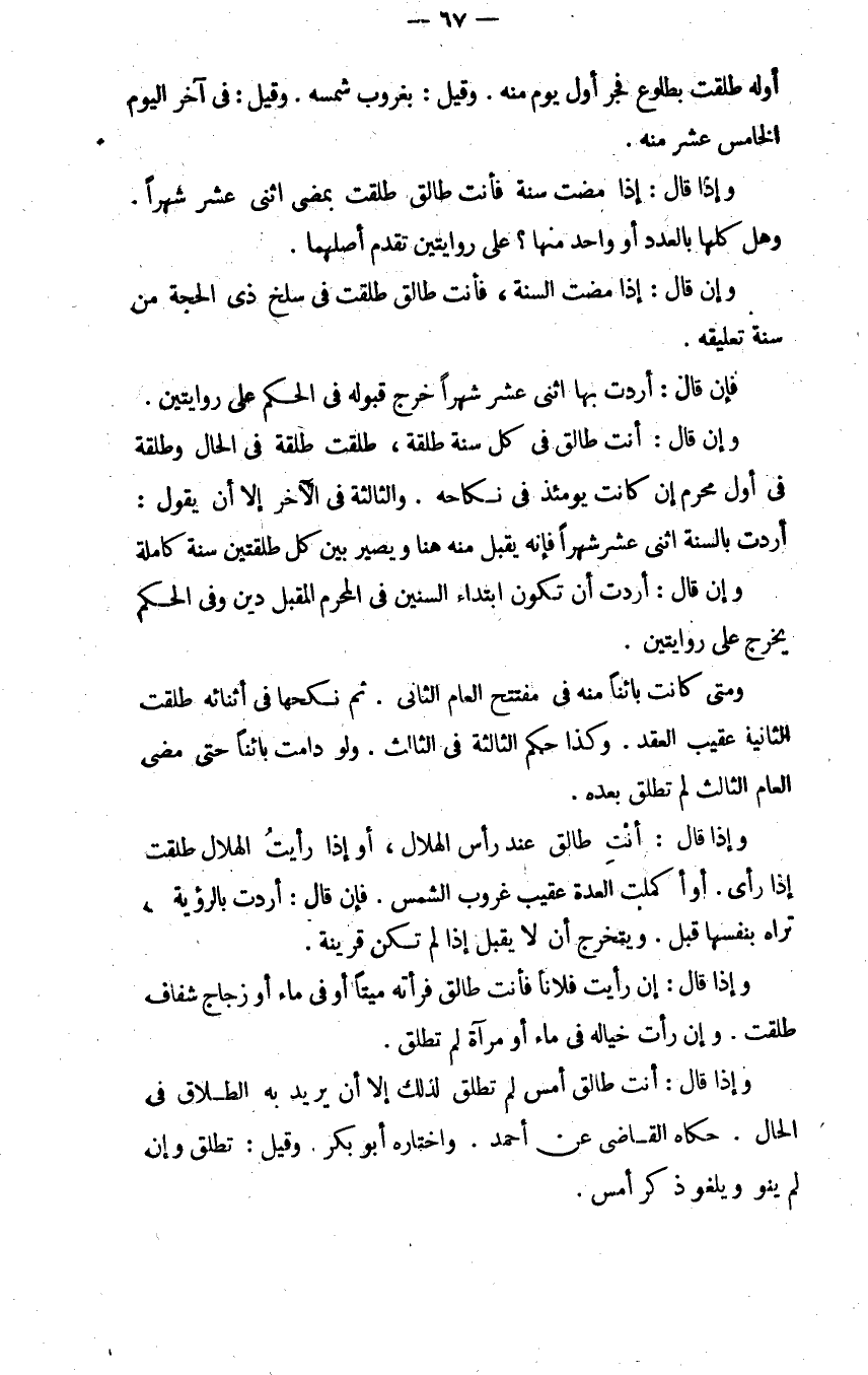 أوله طلقت بطلوع فجر أول يوم منه وقيل بغروب شمسه وقيل في آخر اليوم الخامس عشر منه.