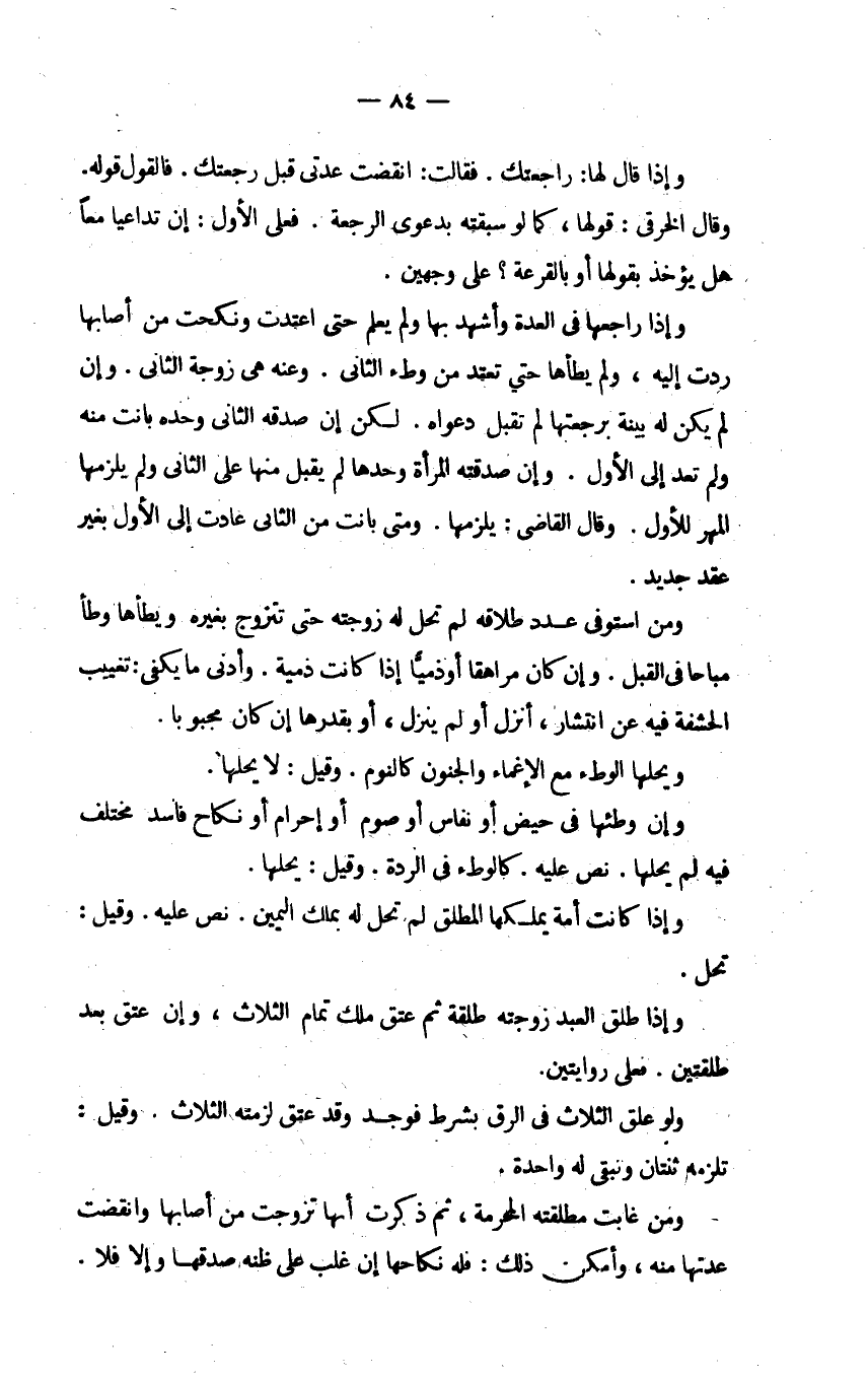 وإذا قال لها راجعتك فقالت انقضت عدتي قبل رجعتك فالقول قوله وقال الخرقي قولها كما لو سبقته بدعوى الرجعة فعلى الأول إن تداعيا معا هل يؤخذ بقولها أو بالقرعة على وجهين.